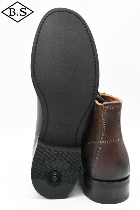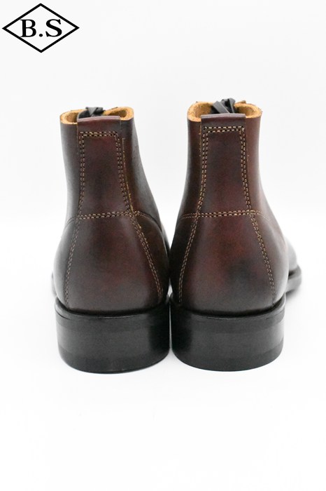 しっとりした肌と、フルアニリン(染料のみで染めた)レザーならではの透明感を持ち、履き込むと深まる色の陰影と、色がフェイドして浮き上がるように出る茶芯で、味わい深い経年変化をします。