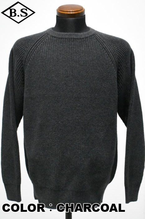 無駄の無いシンプルなデザインで様々なコーデに合わせやすく、ラグランスリーブで動きやすさも十分な一枚。