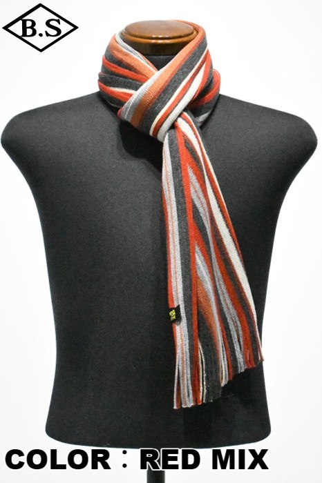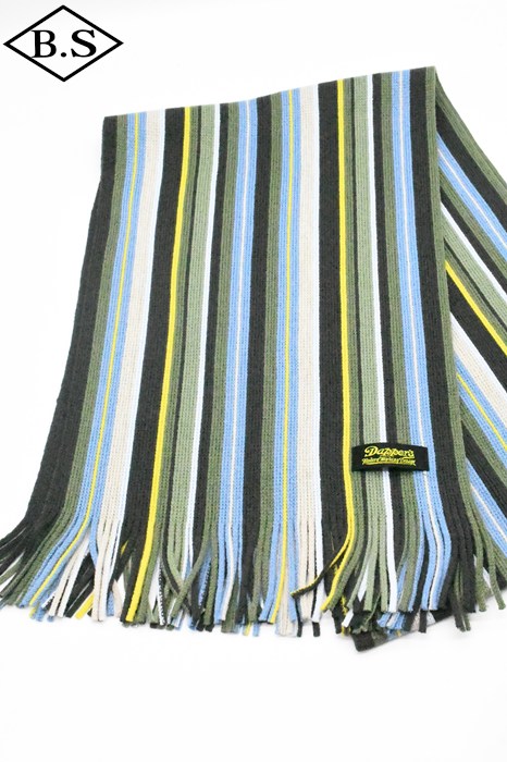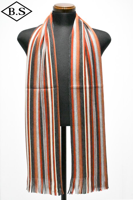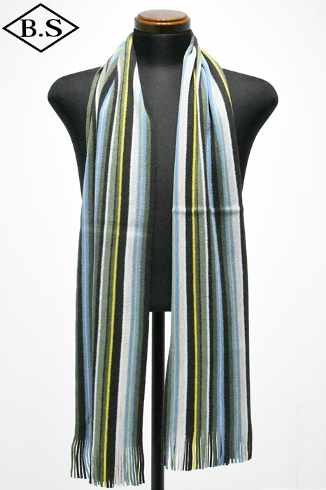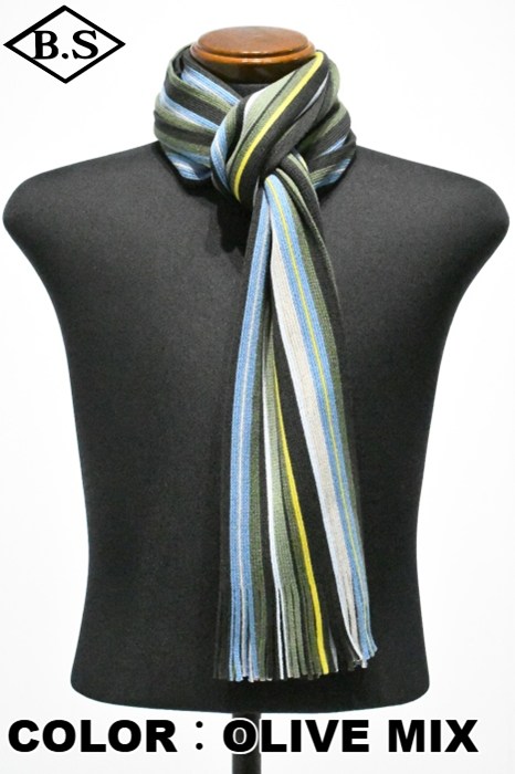 伸縮性があり色鮮やかなストライプ柄が特徴的で、ここ近年改めて注目されてきているラッセル編みマフラーです。