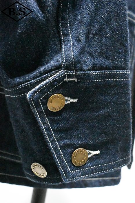 フロント/袖口:「UNION MADE」刻印入り真鍮チェンジボタン