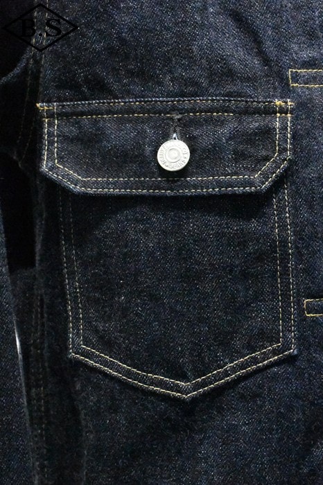 職人がハンドルミシンを使用し手刺繍を行う「ハンドル刺繍」のデニムジャケット。1950年代のハンドル刺繍を使用し、1針1針手で刺繍を施すこと、刺繍を綿糸で行うこと、生地に裏当布を使用しないことなどの条件を満たし、高密度で刺繍するため1着に2日の作業時間を要しますため、およそ2カ月の作業期間=40着の数量限定とさせて頂きます。ハイレベルなハンドル刺繍の職人技と品質を是非御覧下さい。