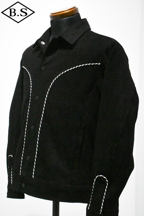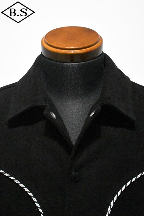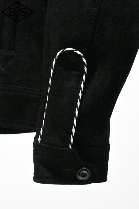 オリジナルのツイストテープを贅沢にあしらったゴートスウェードのウエスタンジャケット。