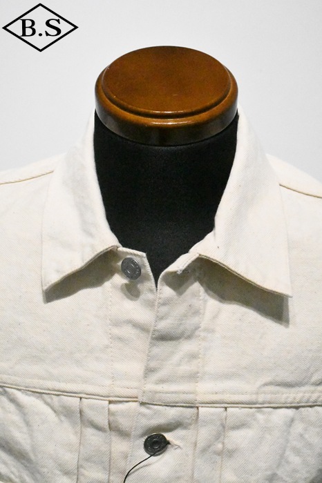 継続して好評いただいているLASTRESORT DENIMの2nd TYPEデニムジャケットを、インディゴ染色を施さない生成りデニムで製作したモデルです。
