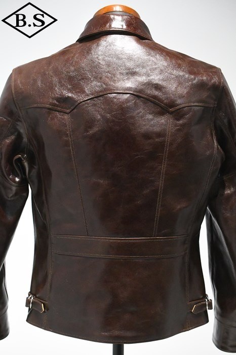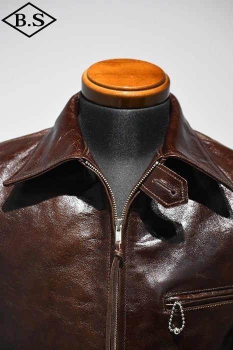 アメリカ小売業大手企業のシアーズ・ローバック社が1930年代にプライベートブランドとして生産した"HERCULES"の襟付きスポーツジャケットを元に馬革素材の仕上げ方法と型紙に拘って製作しました。