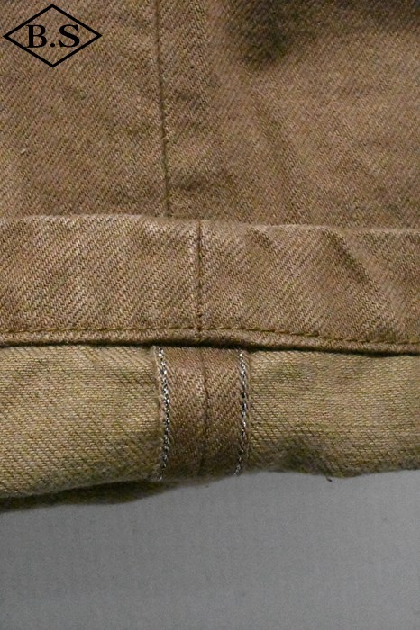 チノでは通常無い太い6番糸を硫化染料でカーキ色に染め上げ、それを旧式の力織機でしっかりと打ち込みを入れて織り上げた珠玉のセルビッチチノ生地です。