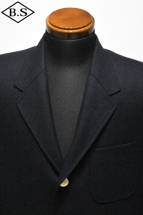 素材には、メリノウールを使用した 2/2綾織(サージ生地) を採用。トップ糸を使った先染めで、適度な毛羽感を残しつつ、高級感とカジュアルさを両立させました。しっかりとした打ち込みによる反発感と、自然なドレープ性を併せ持つのも特徴です。高級感がありながらも日常で気軽に羽織れる「紺ブレ」。デニムやチノとの相性も抜群な、この渋カジの象徴的アイテムをぜひ体感してください。