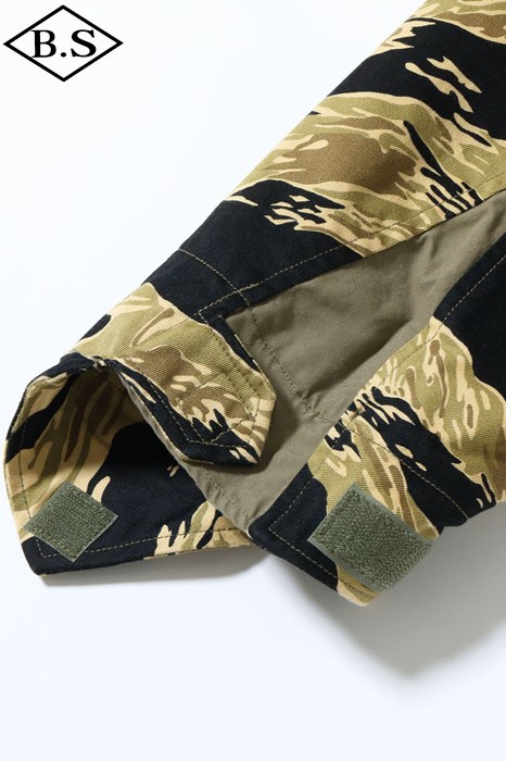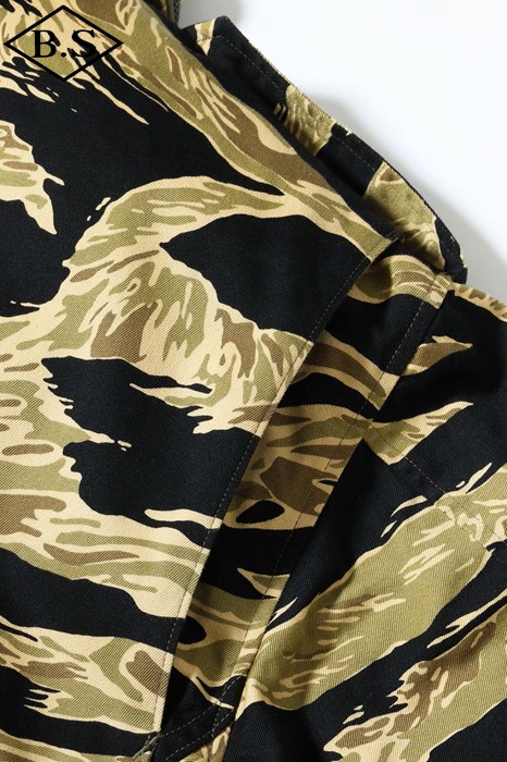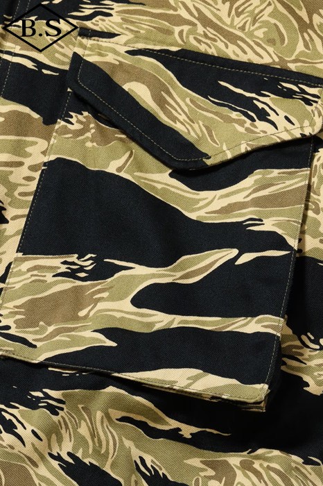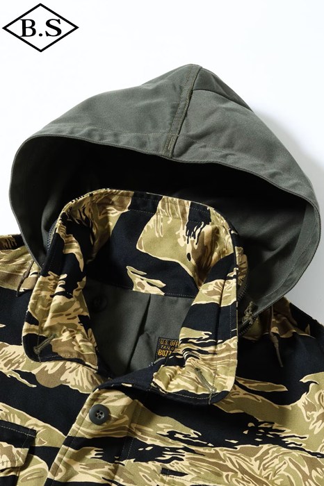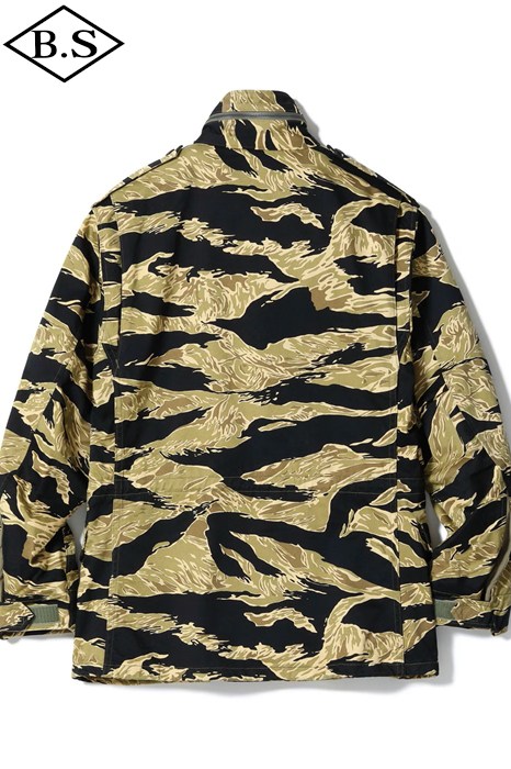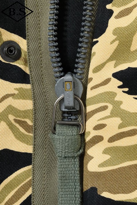 究極のフィールドジャケットとして君臨し続けるM-65。そのルーツは第二次大戦時のM-41フィールドジャケットに始まり、時代と共に試行錯誤の上改良が重ねられ、ベトナム戦争でその完成形をみることになる。この完成度の高いM-65は現在の民間衣料にも多大な影響を与え続けているが、当時としても画期的なジャケットで兵士達からは絶大な人気を得ていた。当時、現地のベトナムでは米軍将兵からすれば実に安い代金でオーダーメイドの衣服を仕立てることができた。そこで兵士達は官給品のジャケットを基地周辺のテーラーに持ち込み、調達可能な素材を使って「これと同じ型のジャケットを作ってくれ」と頼んだのである。こうして官給品とはひと味違ったタイガーパターンなどのジャケットが誕生したのであった。